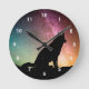 Horloge Ronde Silhouette Wolf Avec Lumières Du Nord