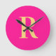 Horloge Ronde Simple Monogramme moderne Hot rose