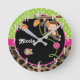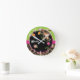 Horloge Ronde Singe & Fleurs Rose Vert Safari Chic Customisé