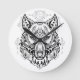 Horloge Ronde Tête de loup aux décorations ethniques