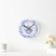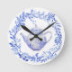 Horloge Ronde Théière Bleue et Blanche avec Couronne