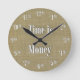 Horloge Ronde Time is Money Clock - White text on taupe