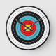 Horloge avec une cible de tir à l'arc avec anneaux concentriques d'or, rouge, bleu, noir et blanc. Personnalisable . Une grande horloge pour les amateurs de sport de votre vie.