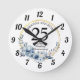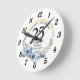 Horloge Ronde Tout mariage Élégant Bleu Floral Anniversaire