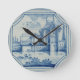 Horloge Ronde Tuile de Delft montrant un pont-levis au-dessus d'