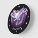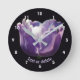 Pretty purple tulip flower with a tiny visiting bee nature wall clock. Flower photography by Susan. This image is available on many cards and products in my main store Smilin' Eyes Treasures. Visit my Profile page to find links to all of my stores.