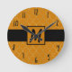 Horloge Ronde Turmeric Yellow & Gold Quatrefoil Monogrammed