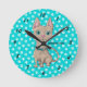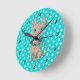 Horloge Ronde Turquoise Paw Print Sphynx Cat Wall Clock
