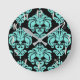 Horloge Ronde Turquoise Turquoise & Noir Damas Moderne Personnal