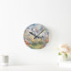 Une horloge murale montrant une image rêveuse d'une licorne blanche avec une crinière arc-en-ciel debout dans un champ de fleurs. Dans l'arrière - plan se trouvent des montagnes majestueuses. Le cadeau parfait pour donner à ceux qui aiment les licornes magiques et mystiques. Contient du contenu génératif.