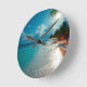Horloge Ronde Vagues tropicales Plage ciel bleu nuageux