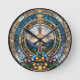Laissez-vous séduire par l'élégance intemporelle de notre horloge murale d'inspiration vitrail. Le design rond présente des détails complexes qui rappellent un chef-d'oeuvre de fenêtre classique. Un motif central, une croix à la montagne, attire l'attention, sur fond de teintes sereines bleues et vertes. Des chiffres romains ornent la face de l'horloge, ajoutant à son charme d'antan. Idéal pour les amateurs de déco familiale à la recherche de fonctionnalité et d'art