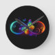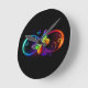 Horloge Ronde Vibrant infinity with rainbow butterfly on black