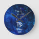 Horloge Ronde Virgo Zodiac Constellation Blue Galaxy Monogram