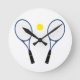 A graphic illustration of blue rackets and a yellow tennis ball a great wall clock for the tennis/sport enthousiaste