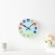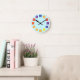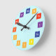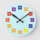 Wall Clock featuring first twelve elements of the periodic table as numbers. Éléments featurés: hydrogène, hélium, lithium, béryllium, borone, carbon, nitrogène, oxygène, fluorine, néon, sodium et magnésium. Each element group marked in rainbow colours.