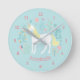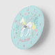 Horloge Ronde Whimsical Unicorn & Flowers Aqua Personalized