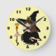 This witch design wall clock is a timekeeping device designed to hang on a wall, serving as both a functional tool and a decorative focal point for a room. Made from acrylic and features a pre-installed backside hanging slot for easy hanging and a non-ticking design. You can customise this wall clock with any text of your choice. Should you require any help with customising then contact us through the link on this page. Witch design wall clock
