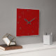 Une horloge carrée rouge simple avec des chiffres gris. Simple et élégante, cette horloge peut être personnalisée en rond.