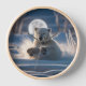 ludique ourson polaire roule dans la neige, avec une grande lune lumineuse dans l'arrière - plan. Le jeune ours polaire jouit d'un paysage enneigé, soulevant un nuage de neige avec ses pattes.