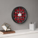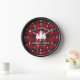 Une horloge murale rustique de campagne élégante, avec votre nom et "Cabine de famille", Ranch, Cottage ou autre texte ainsi que sa date et son emplacement établis si désiré. Ce design personnalisé et unique présente un charmant texte rustique de style campagnard avec une silhouette blanche de pins sur un imprimé classique de plaid de buffle rouge. Idéal pour vos vacances de noël ou à tout moment de l'année. Pour voir d'autres modèles comme celui-ci, veuillez visiter ma boutique ici à "Zazzle.com/Store/Rustic_Charm". Merci .