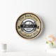 Horloge à motif de style logo rétro avec nom de famille personnalisé et date de création