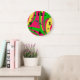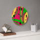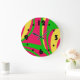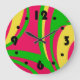 Horloge psychédélique de style années 60 avec motifs super et couleurs fracassantes. Parfait pour les hippies et les enfants à fleurs de tous âges. Quatre permettent de lire de grands nombres noirs imprimés sur le visage avec des points pour localiser le reste. Image copyright 2012 par Margaret E. Cmelik.