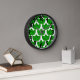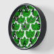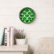 Cette horloge murale a un design scandinave de trios feuilles se répétant à travers le design dans trois nuances de vert.