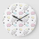 Cette horloge est décorée de petits coeurs noirs et de moutons avec de la laine de polkadot pastel. Parfait pour une chambre de pépinière ou de petite fille !