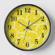 This wooden frame clock is shown with cute lemons print.