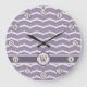 Profitez d'un motif de zigzag amusant avec une jolie floraison, car le zigzag beige se courbe de haut en bas jusqu'à des points dans une forme inspirée des pétales de lotus. Ce zigzag fleuri se dresse sur un arrière - plan lilas agréable pour un contraste apaisant. Customisez l'initiale sur cette horloge pour faire une décoration pour votre maison qui est unique à vous.