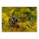 Cette carte de billet présente Dolichovespula maculata, un insecte nord-américain communément appelé le klaxon à tête chauve (ou le klaxon à tête blanche ou le klaxon à queue blanche). Ses caractéristiques bien connues comprennent ses nids de papier suspendu et l'habitude des femelles de les défendre avec des paillettes répétées. Il appartient au genre des guêpes appelés javelots. Les marques noires et blanches frappantes se détachent des belles fleurs jaunes de verge d'or. De près, ce insecte à la recherche effrayante semble être arrivé d'une autre planète !