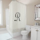 Cet élégant rideau de douche a un arrière - plan blanc cassé dans un faux motif de burlap texturé. Le monogramme est noir. Un cadeau simple mais élégant pour un mariage ou un ménage. Tous droits réservés © 2015 Alan & Marcia Socolik.