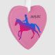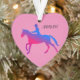 CHEVAL D'ÉQUITATION DE FILLES AVEC NOM PERSONNALISÉ EN ORNEMENT COEUR ROSE & BLEU.