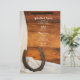Customisez le menu rustique chic Horseshoe et Satin Country Western Mariage Menu avec les détails du repas que vous pourrez servir à votre déjeuner de douches nuptiales de style agricole informel, dîner de répétition ou réception de mariage lorsque vous ajoutez la salade ou le premier plat, entrée ou deuxième plat et dessert ou troisième plat. Ce charmant menu mariage à thème de ranch personnalisé comprend une numériquement photo améliorée d'un fer à cheval rouillé et du satin blanc et d'un arrière - plan patiné en bois de grange. Parfait pour le couple qui a planifié une ferme rurale décontractée mais classe, grange party, ranch, équestre, cheval ou mariage occidental thème.