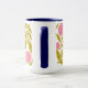 This is a vibrant and floral "Hot Momma" Mother's Day Mug features a wrap-around design with a bold, hand-painted writing, leaves and flowers. This mug is covered in a lush pattern of bright carnations and green foliage.