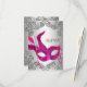 Masque de plumes roses chaud mascarade argent invitation RSVP.