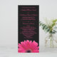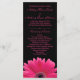 Vous pouvez personnaliser tout le texte sur ces gerbera rose chaud (gerber) fleur marguerite, arrière - plan noir personnalisées programmes de mariage abordables. Le design présente une marguerite rose vif et joyeuse sur un arrière - plan arrière - plan noir. Design floral simple et élégant. REMARQUE : Il s'agit d'un design imprimé plat sans embellissement en relief ou en 3D. Pour modifier le texte, utilisez les options de personnalisation. Ou, pour des modifications plus importantes (police, taille de police, couleur de police, emplacement du texte), choisissez customiser. Vous pouvez même changer la couleur noire de l'arrière - plan que vous voulez. Il s'agit d'un excellent programme de mariage bon marché pour un mariage au printemps, en été ou en hiver ou un mariage avec un thème de fleur de marguerite rose.