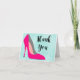 Une carte de remerciement avec une chaussure en stiletto rose chaud. Placez-vous sur un arrière - plan d'aquarelle vert menthe. Chic et glamour.
