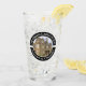 Hôtel ou Pub bière verre ou boissons verre avec le nom de l'hôtel, photo, et emplacement.