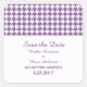 Simple mais élégant Houndstooth Save the Date Stickers avec un arrière - plan motif tendance violet et blanc houndstooth. Facile à customiser avec vos détails mariages. Pour plus d'options de personnalisation, cliquez sur le bouton Customiser.