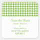 Simple mais élégant Houndstooth Save the Date Stickers avec un arrière - plan motif tendance vert et blanc houndstooth. Facile à customiser avec vos détails mariages. Pour plus d'options de personnalisation, cliquez sur le bouton Customiser.