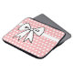 Un joli motif à pois rose et blanc et un grand nœud donnent à ce sac d'ordinateur un style rétro. Cette housse d'ordinateur est idéale pour les femmes, les filles, les adolescentes, l'école, le travail, l'université, un cadeau, etc... Le design est issu d'une création originale.