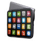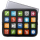 Housse d'ordinateur portable avec des icônes d'applications colorées. Idée de cadeau amusante et geek pour les nerds de la programmation informatique et les geeks d'Internet. Impression colorée avec des icônes de smartphone.