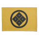 【まるにすみたてよつめ】目結(めゆい)紋/隅立て四つ目、丸に隅立て四つ目は、目結紋の中で最も使用例が多い。(高澤等著「家紋の事典」)/この図案は、泡坂妻夫著「卍の魔力、巴の呪力」の’丸に隅立て四つ目’の作図法を参考に紋章上絵師の伝統的な手法(四つ目の場合は円を八つ割りする)に則って作図(2013/6/24)した。