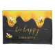 Un arrière - plan noir chic décoré de miel doré dégoulinant. Le texte : Bee Happy avec un script de style en lettres d'or avec des swashes. Personnalisez et ajoutez votre nom ou votre nom de famille.