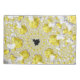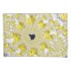 Ce produit présente un graphique numérique fractal abstrait en or et blanc avec Mandelbrot noir au milieu.