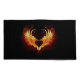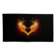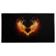 Angel fire heart with flaming wings on black background.