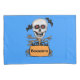 Ces taies d'oreiller sont d'une couleur bleue vif, avec des crânes aux yeux roux et des branches d'arbre pour les bras portant un signe orange qui dit : Attention aux chauves-souris noires qui volent au-dessus de leur tête.