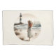 Une jeune femme gracieuse, vêtue d'une robe blanche qui coule le long du rivage sablonneux, son casquette du soleil penche contre la brise en contemplant un phare rayé debout contre les vagues. Des herbes douces encadrent l'avant-plan tandis que des oiseaux marins et un voilier dérivent à travers l'horizon, ajoutant un sentiment de mouvement calme au paysage côtier. La douce aquarelle mêle romantisme et sérénité, créant une scène balnéaire intemporelle d'inspiration cottagecore, à la fois nostalgique et rêveuse. L'IA a généré des oeuvres d'art.